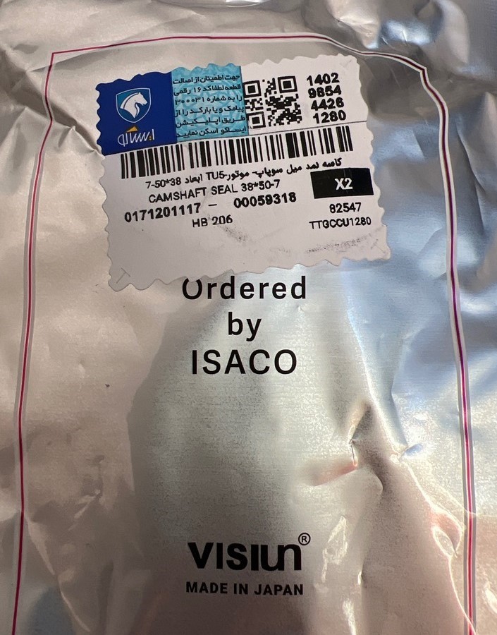 کاسه نمد میل سوپاپ ویژن Tu5 ایساکو اصل ۰۱۷۱۲۰۱۱۱۷